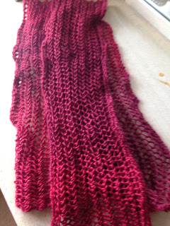 Then I dug around in my stash and found some Diadem yarn from Knit Picks. It was left over from a Christmas gift I made for a friend. The color way is ruby, and it's a silk-alpaca blend. I love this yarn because it's incredibly soft, and I still have a couple more skeins in my stash, so this isn't the last you'll be seeing of Diadem.